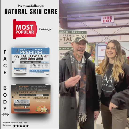 🍊 NOURISHING CREAMY SOFT BODY BUTTER – Rendered only from the nutrient-rich kidney fat of Canadian Black Angus cattle (not regular beef tallow). This Product's Superior Nutrient Profile of Vit A, D, E, K2 + Beneficial Fatty Acids — nature’s most concentrated source of bioavailable nutrients are found in Suet. Speciality Rendered. 70% Suet, 30% Organic Jojoba blend. 48hr Slow Roasted Infused Vanilla Beans.