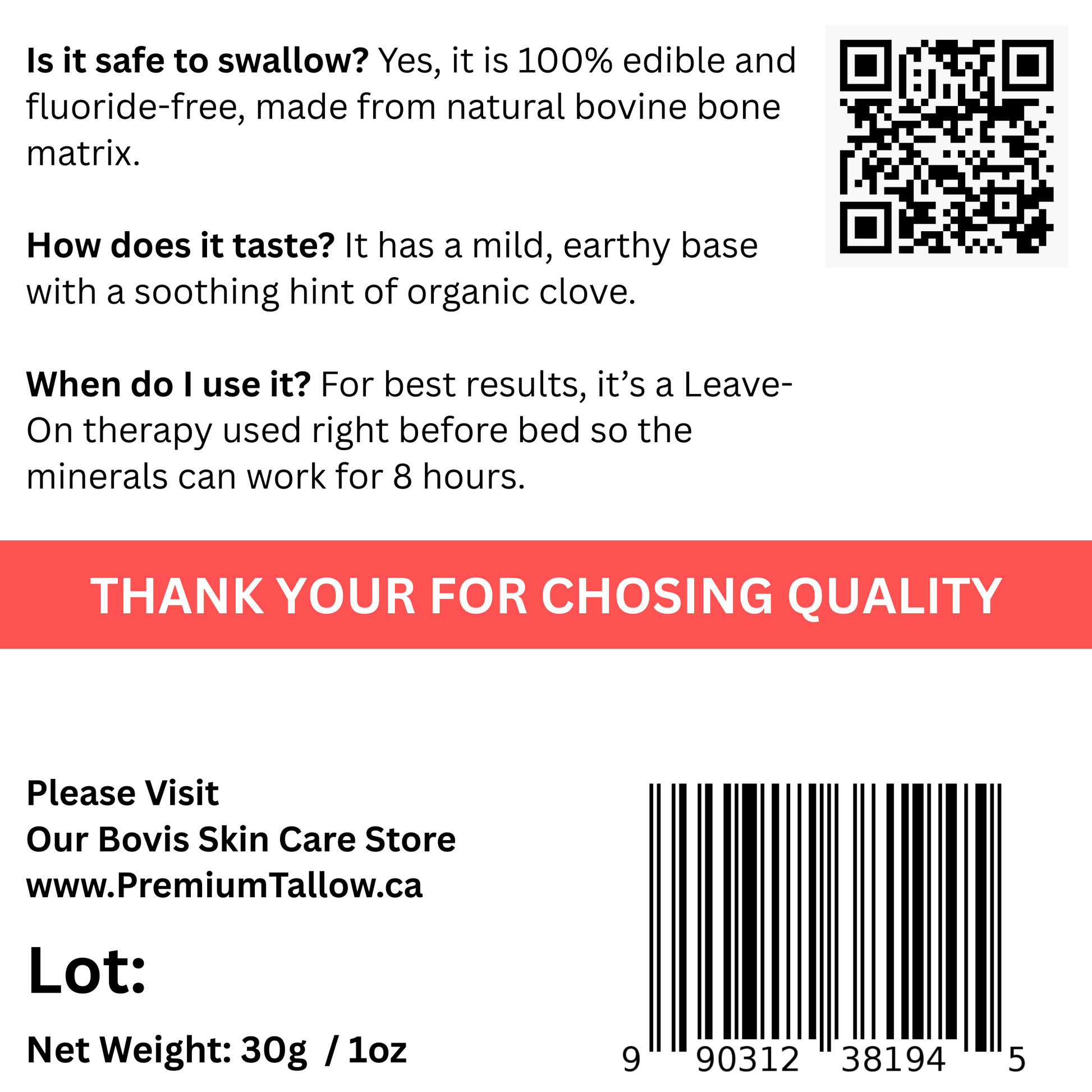 Bio-Compatible Natural Remineralization: Features a whole-bone matrix mineral derived from natural bovine sources to mirror your tooth’s natural composition.