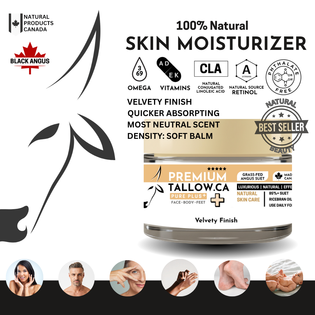 85% Premium Angus Suet Tallow, Enhanced with Organic Rice Bran Oil and Arrowroot, it delivers a neutral scent and Velvety finish that stands out. Perfect for beauty enthusiasts, babies, sensitive or inflamed skin, and as a pre-sun barrier.